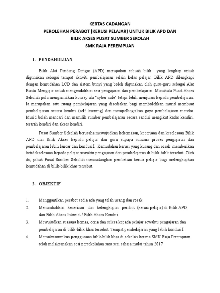 Kertas Cadangan Pembelian Perabot Kerusi Pdf